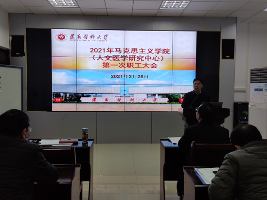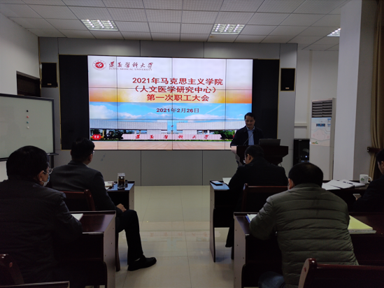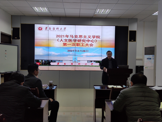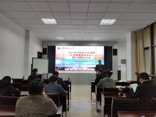 2021年2月26日上午,球盟会(人文医学研究中心)在人文楼313多功能厅召开了新学期全体职工会暨教学准备会。会议由马克思主义公司党委书记李荣远主持,球盟会(人文医学研究中心)班子成员和全体教职工参加了会议。