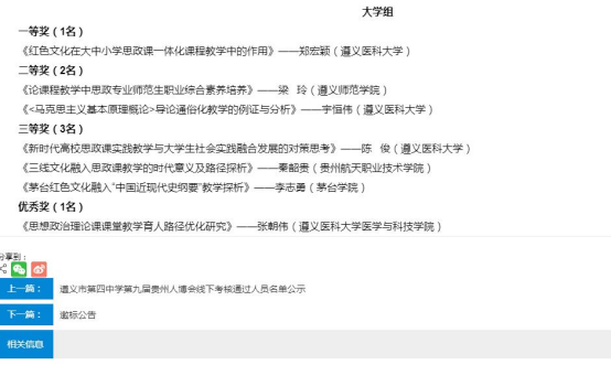 在此次论文征集活动中,公司教师郑宏颖的论文《红色文化在大中小学思政课一体化课程教学中的作用》、宇恒伟的论文《<马克思主义基本原理概论>导论通俗化教学的例证与分析》和陈俊的论文《新时代高校思政课实践教学与老员工社会实践融合发展的对策思考》分别荣获“遵义市首届大中小思政课一体化改革创新论文”大学组一等奖、二等奖和三等奖。