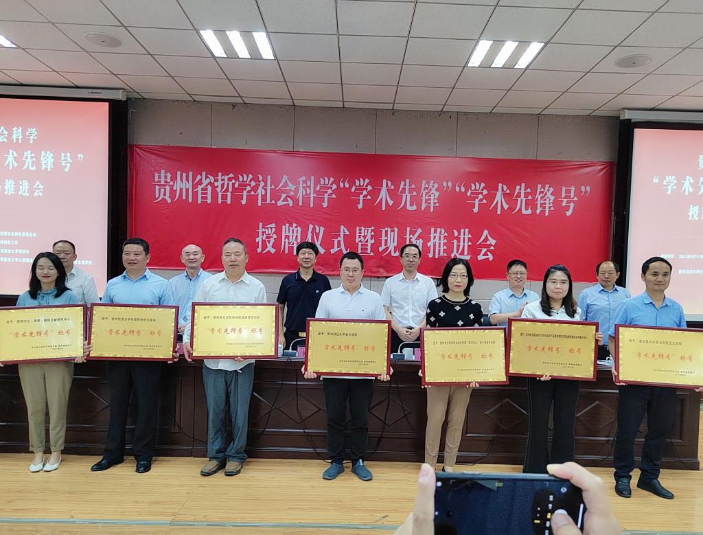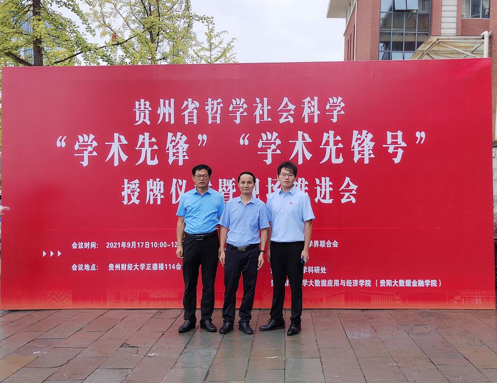 9月17日,由贵州省社科联、省教育厅联合主办,贵州财经大学承办的贵州省哲学社会科学“学术先锋”“学术先锋号”授牌仪式暨现场推进会在贵州财经大学召开。省社科联党组书记、副主席包御琨,省教育厅副厅长战勇,贵州财经大学党委书记刘雷,董事长赵普,副董事长李汉文等领导出席会议。省社科联党组成员、秘书长刘丰泉主持会议。来自全省“学术先锋”“学术先锋号”代表、高校社科联(科研管理部门)80余人参加会议。球盟会副经理鲍中义教授和王纪鹏教授、沈洋副教授受邀参加会议。鲍中义教授代表球盟会官方网站接受“贵州省哲学社会科学学术先锋号”命名授牌。王纪鹏教授、沈洋副教授分别接受“贵州省哲学社会科学学术先锋”命名授牌。据悉,近年来,在省社科联、省教育厅的联合推动下,我省已连续开展三届遴选工作,“学术先锋”和“学术先锋号”的产生必将有力推动我省思想、政治、经济、文化等领域的创新发展,对新时代繁荣全省哲学社会科学事业发展具有重要意义,为我省高质量经济发展提供强有力的人才保障和智力支撑。(撰稿:吴启存,摄影:王纪鹏、沈洋)