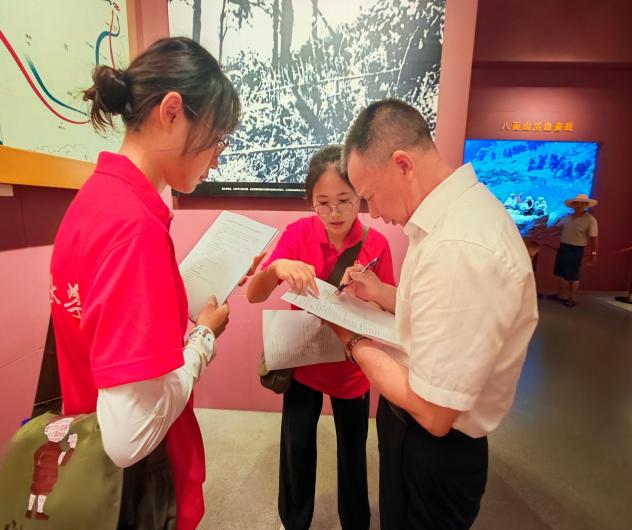 在感悟革命精神期间,队员们还围绕团队的实践课题发放问卷并进行深度访谈,从多元视角了解革命传统教育。随机采访中,银发老党员所说的“理想信念是人生压舱石”的观点,愈发激发了队员们传承红色基因的使命感。