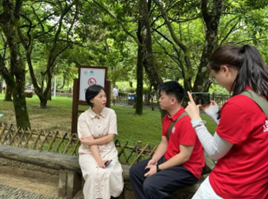 随后,队员们来到茨坪毛泽东同志旧居,斑驳桌椅无声回溯毛泽东同志运筹帷幄的峥嵘岁月。在南山公园,实践队沿着山道徒步至山顶火炬广场,34米高“革命火炬”雕塑巍然矗立,象征生生不息的革命精神,激励队员们勇毅前行。