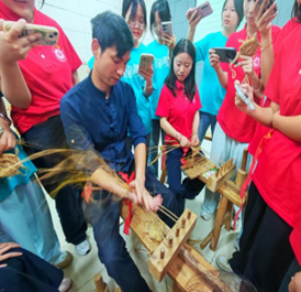 夜幕降临,实践队沉浸式体验“红军的草鞋”课程。队员们感慨草鞋“怎能忍受长途跋涉”,深刻领悟了“幸福生活来之不易”。