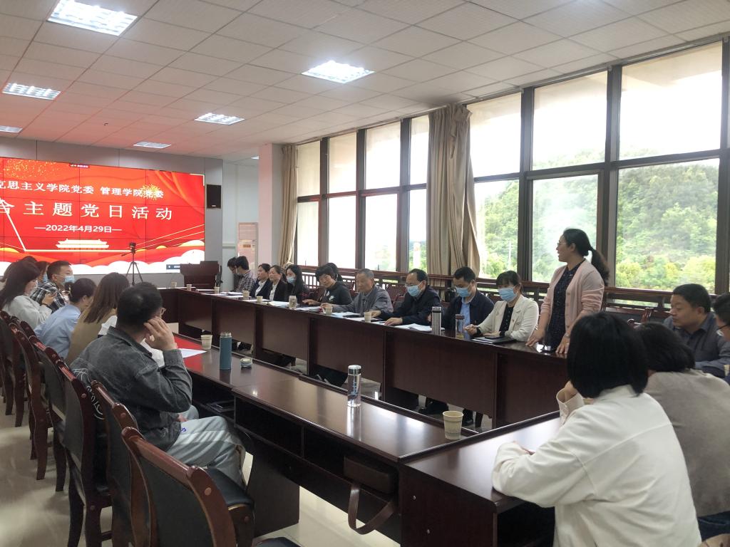 为推动党史学习教育常态化,4月29日上午,马克思主义公司党委与管理公司党委在人文楼313学术报告厅联合开展主题党日活动。活动由副处级组织员吴成玉主持,马克思主义公司党委委员、管理公司党委委员、球盟会第二党支部全体党员及入党积极分子参加活动,公司关工委副主任顾土龙教授、公司原党委副书记田宗远教授应邀出席。