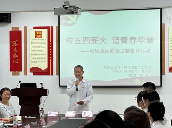 为深入学习贯彻落实党的二十大精神,值此纪念五四运动104周年之际,5月5日晚上,马克思主义公司党委第二党支部、心远社区员工第一党支部于心远社区党团活动室开展“传五四薪火 谱青春华章”主题党日活动。马克思主义公司党委书记王沁、医学影像公司党委书记汪敏文、公司关工委副主任顾土龙应邀参加,马克思主义公司党委第二党支部与心远社区员工第一党支部的师生党员代表近50人参加了活动。