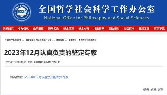 近日,全国哲学社会科学工作办公室公布了“2023年12月认真负责的鉴定专家”,共36人,其中贵州省2人,球盟会官方网站王纪鹏教授位列其中。