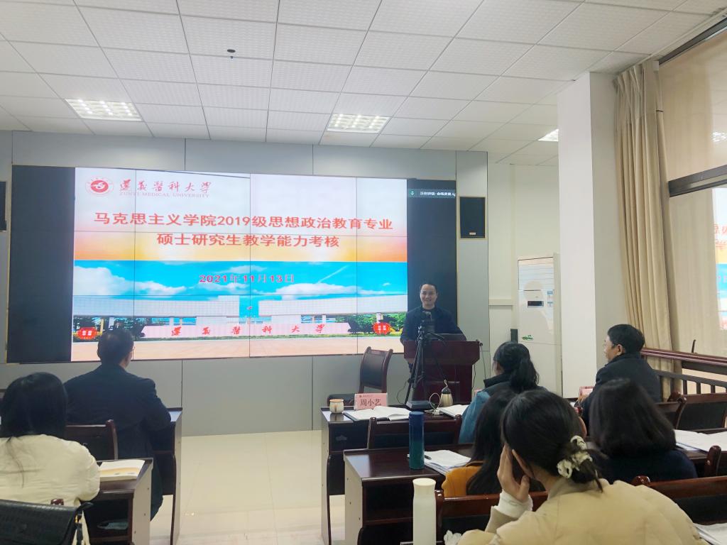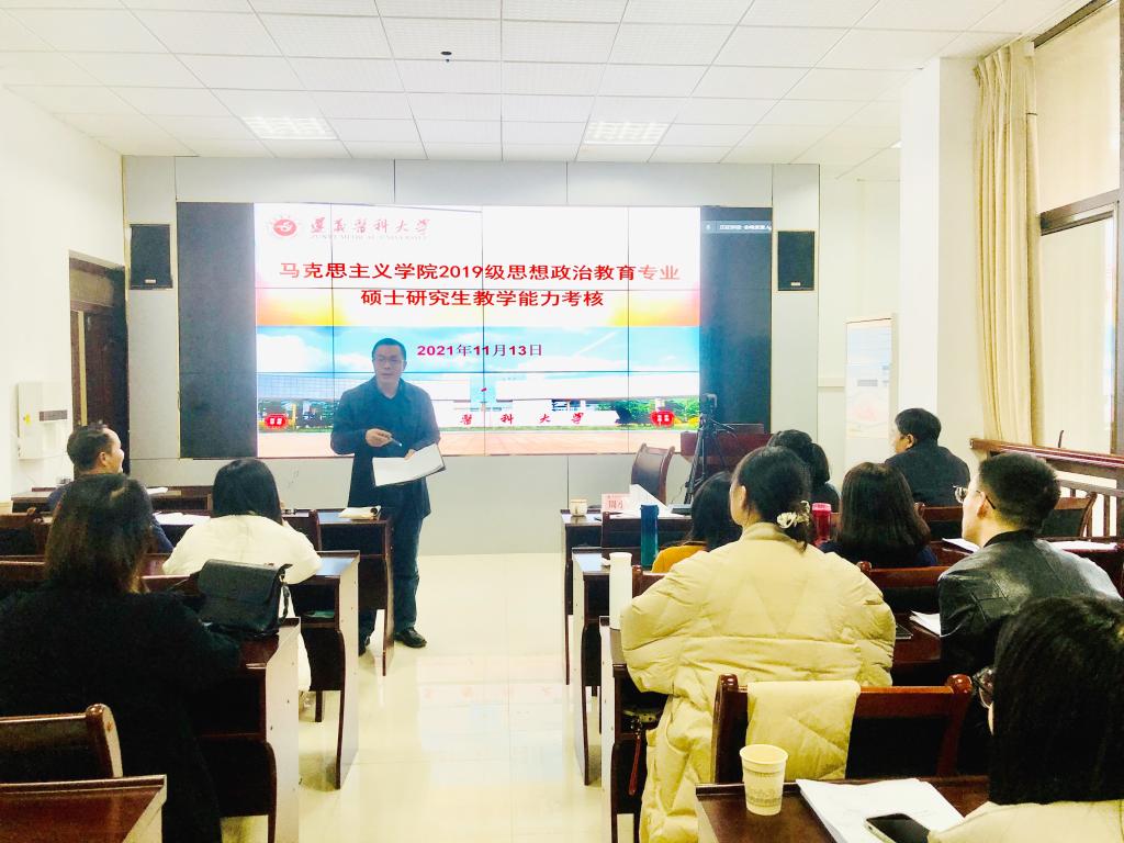 首先,鲍中义教授对教学能力考核的目的、要求及意义作了简要说明,对考核小组成员进行简单介绍。随后,2019级研究生通过PPT进行了20分钟左右的讲课,授课内容主要涉及思政课主干课程“思想道德与法治”“马克思主义基本原理”“毛泽东思想和中国特色社会主义理论体系概论”等课程的相关内容。各位同学在教学中灵活使用了案例教学、情景教学、互动式教学等方法进行授课。考核小组逐一对各位同学的授课情况进行评议,就授课的选题思路、内容安排、教学方法等进行了有针对性的点评,提出了宝贵的意见和建议。最后,公司党委书记李荣远作总结发言,对同学们的整体表现给予了充分肯定,同时寄予了殷切期望。他希望大家继续努力学习专业理论,不断扩充知识面,进一步将理论与实践结合起来,不断提高自己的教学能力和水平。