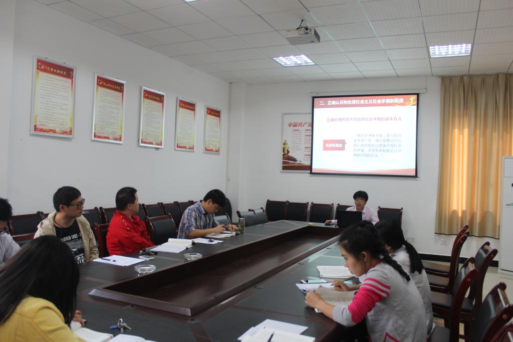 陈俊教授首先对“概论”课第四章社会主义建设道路初步探索的理论成果这一部分内容进行了大致的梳理;然后分别对各小节内容展开了详细地讲解,并合理分配了各小节内容的讲授时间;接着,陈俊教授针对第四章内容在教学过程中的重难点进行逐一说明;随后,“概论”教研室全体老师展开积极的发言和激烈的讨论。集体备课过程中,老师们畅所欲言,各抒己见,把自己的想法、经验、困惑以及在教学过程中遇到的问题都提出来,进行共同探讨。