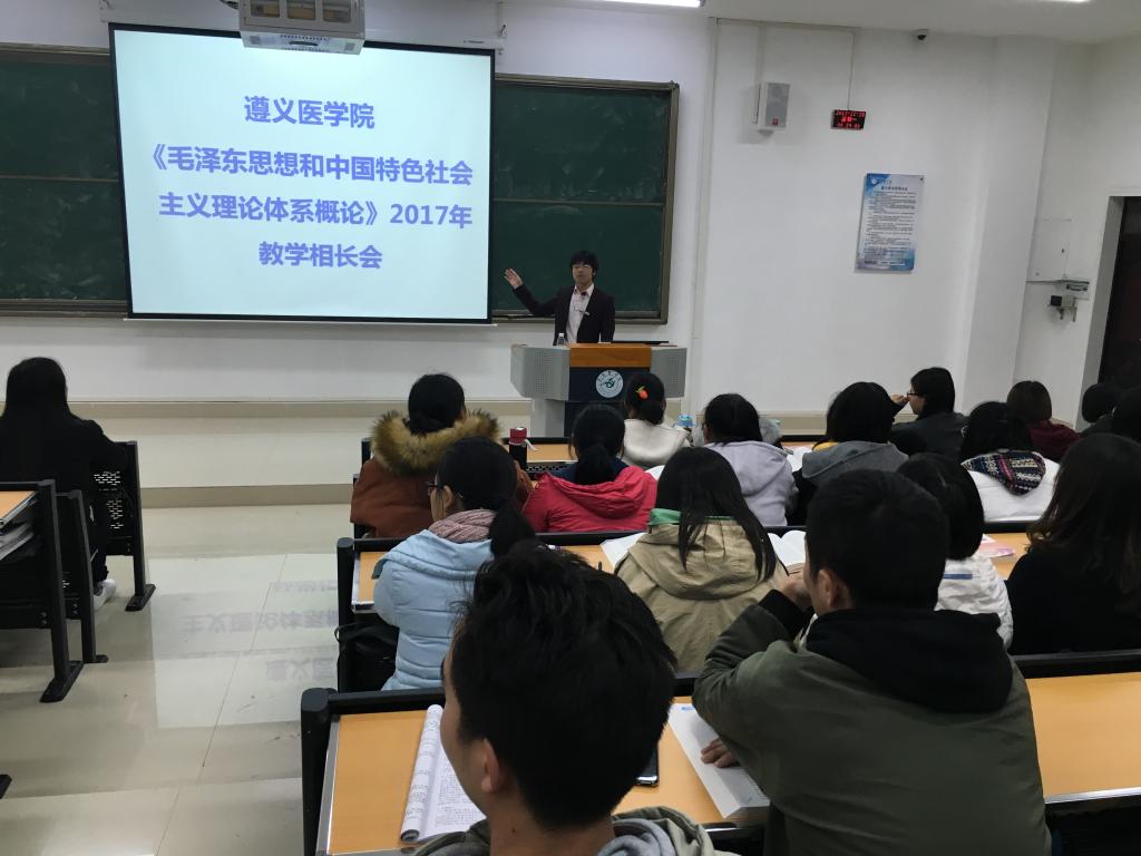 为了深入了解教师教学情况,切实促进《毛泽东思想和中国特色社会主义理论体系概论》课教学改革,增强教学效果,达到思想政治理论课的教学目的。“概论”教研室于2017年11月20日组织召开了教学相长会,教研室部分教师和员工代表们参加了会议。