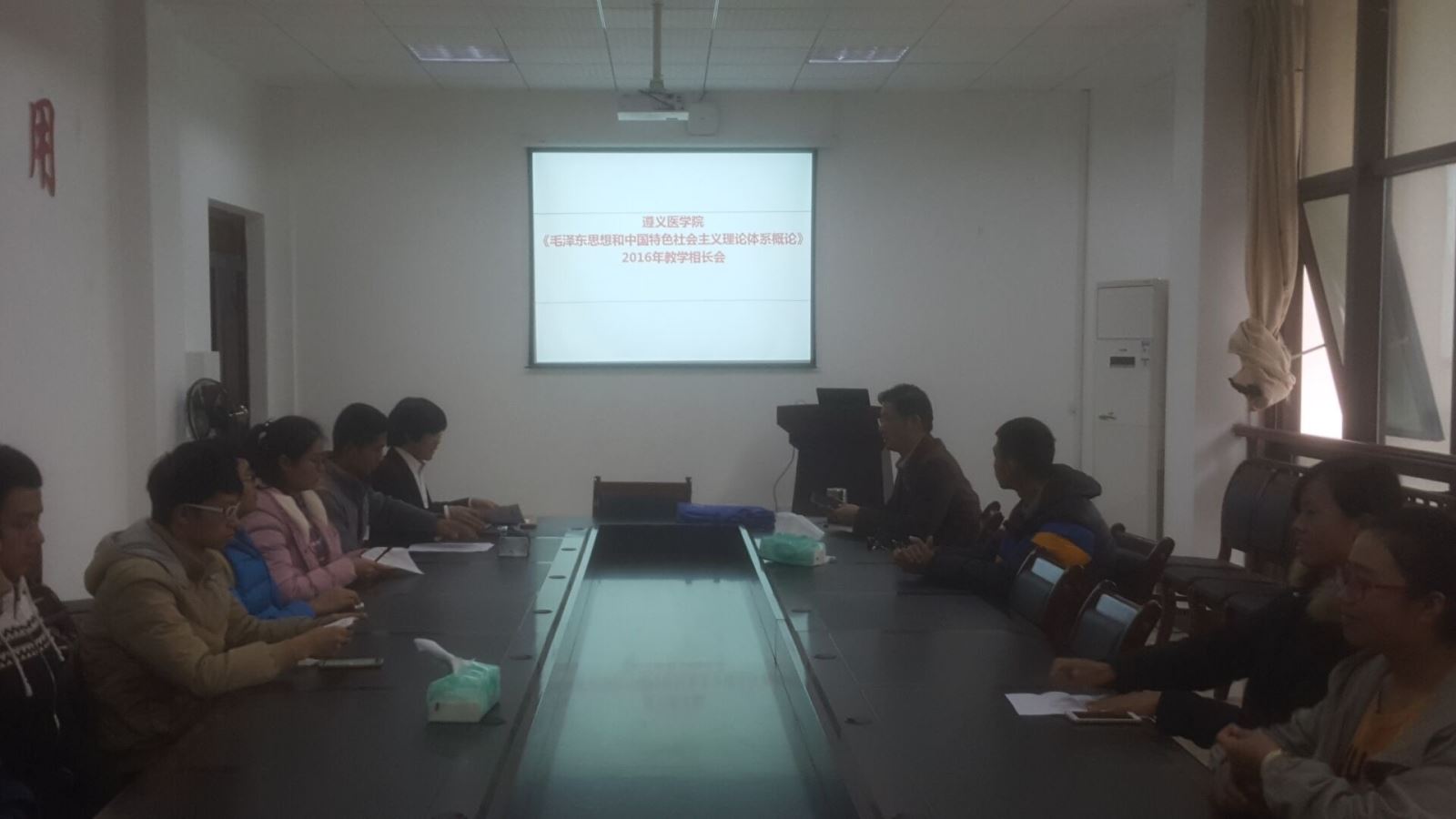 为了全面提高《毛泽东思想和中国特色社会主义理论体系概论》(以下简称“概论”)教研室教师教学质量,推动教学改革与创新,规范教学管理,保证和维护正常的教学秩序,确保教学质量稳步提高,根据公司教务处和人文社科公司的相关教学管理制度,本教研室于2016年11月14日星期一下午13:00在人文楼三层会议室召开了教学相长会,参加本次会议的有今天在新蒲校区上课的本教研室全体教师,以及2015级临床医学、口腔医学技术、护理学、商务英语等各个专业的20多名员工代表。