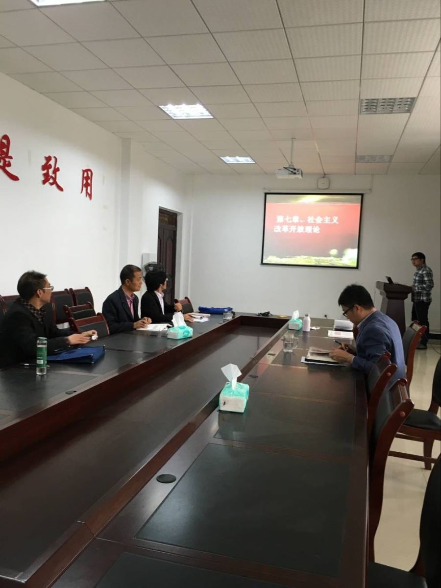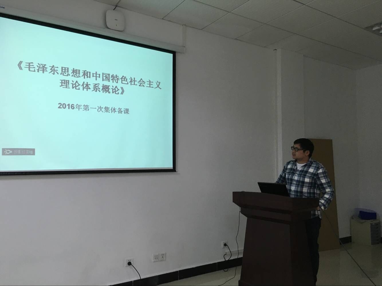 此次集体备课会由“概论”教研室副主任陈俊老师主持,张理甫老师主讲,备课内容是《毛泽东思想和中国特色社会主义理论体系概论》第七章第一、二节,根据教学大纲和教学实施计划,张理甫老师围绕“改革开放是发展中国特色社会主义的必由之路”、“全面深化改革”这两方面的内容梳理了上课的基本思路,设计了教学目的、教学要求、教学重点、教学难点,提出要全面阐释“改革开放是决定当代中国命运的关键抉择”的深刻原因,从而为下一步讲解“全面深化改革”做好铺垫,让老员工全面了解我国改革的总目标和方向,以及改革过程中如何正确处理好各种重大关系。“概论”教研室其他教师对课堂讲授中具体案例的运用、教学材料的取舍、社会热点问题的融入等进行了深入探讨,达到了集思广益、凝聚共识、共同提高、服务教学的集体备课目的。