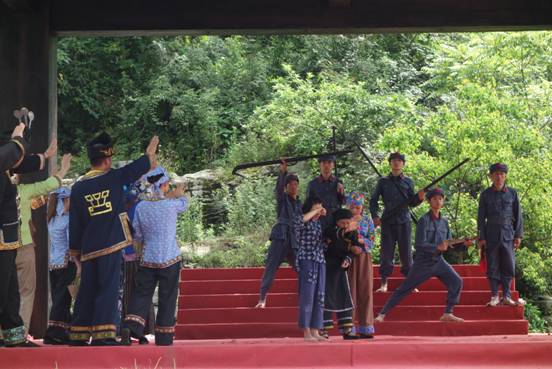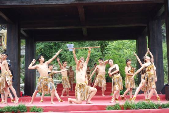 下午,同学们在导游的带领下,参观了仡佬族石头城。仡佬族是个勤劳的少数民族,在历史的演进中创造了自己民族文字,石头城里留下了仡佬族先人同自然环境作斗争,开创早期人类生活的珍贵记忆。同学们聆听导游讲解着一个个关于仡佬族先人智慧的古老传说,对这个民族有了深刻的了解。在石头城中央,同学们驻足观看了具有浓郁风情的仡佬族歌舞表演。那种原生态的表演,仿佛把同学们带到了冥冥洪荒记忆中,仡佬族先人们开天辟地的伟大创举感动了在场的每一个人。演员们还表演了根据当年红军经过平正时发生的感人故事而编排的仡佬族人民保护红军的歌剧,让人们再次进入那硝烟弥漫的战争年代,再次看到了红军和仡佬族人们的鱼水深情。通过这些表演,同学们学到了不少的知识,如仡佬族人民的文字、仡佬族先人所崇拜的六和精神,仡佬族团结好客的优秀品质,仡佬族爱国爱党的崇高信念。随后,同学们又去参观了当年仡佬族头人山登铭与牟直卿乡长拯救红军的黑角岩。