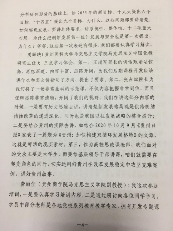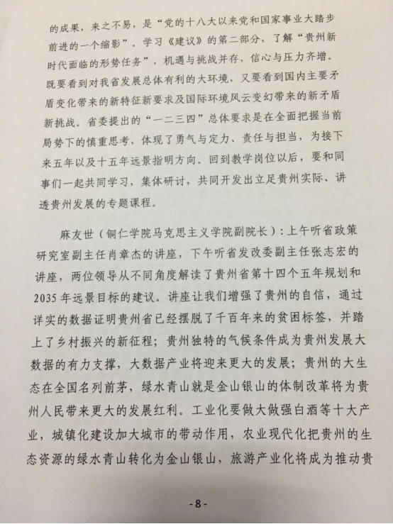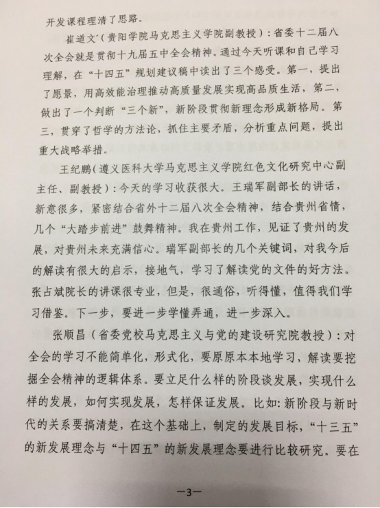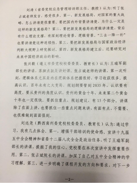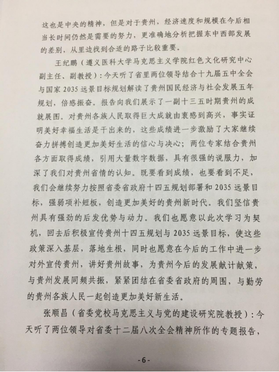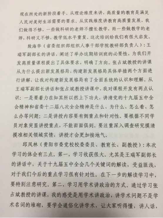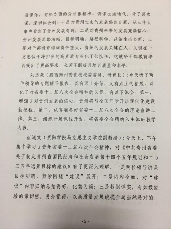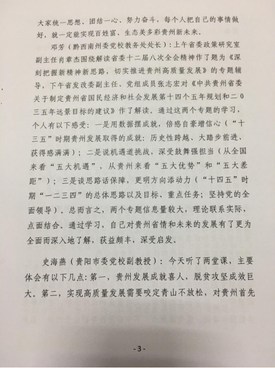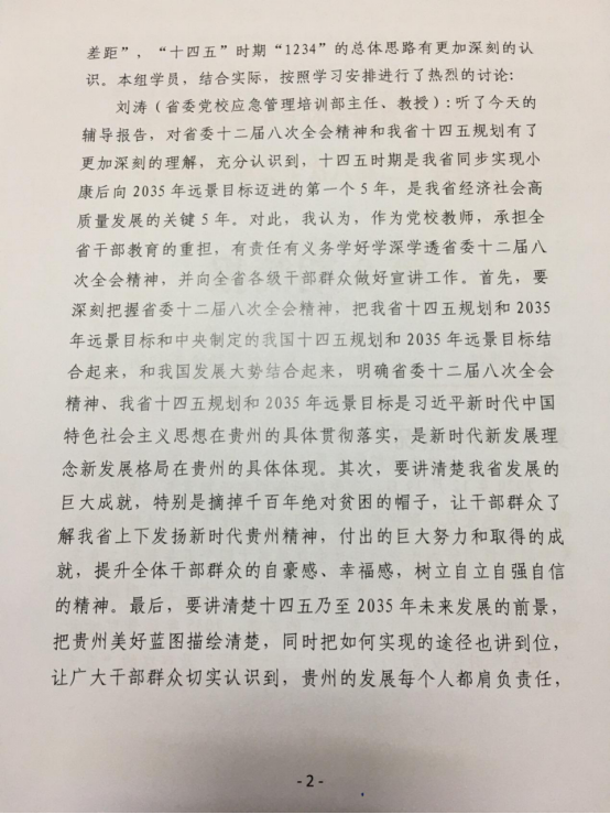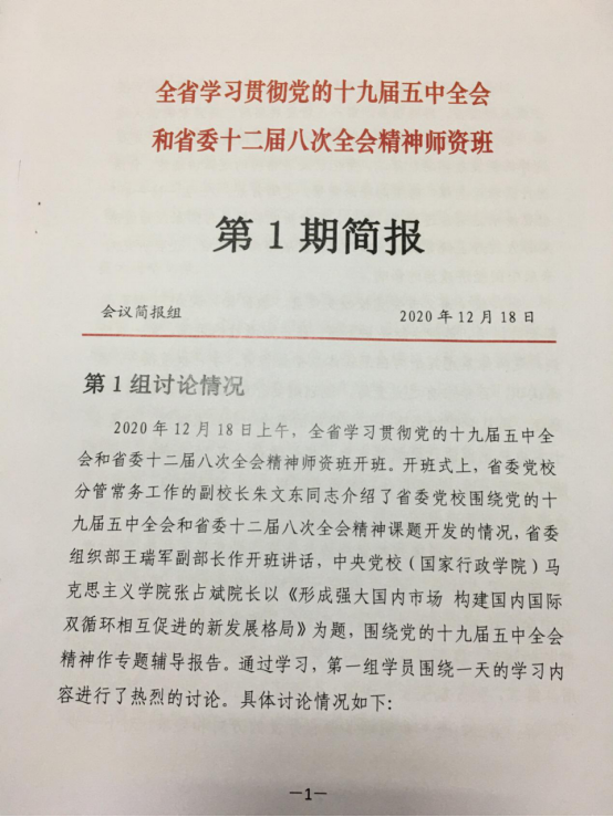 为深入学习贯彻党的十九届五中全会和省委十二届八次全会精神,围绕《中共中央关于制定国民经济和社会发展第十四个五年规划和二〇三五年远景目标的建议》《中国共产党第十九届中央委员会第五次全体会议公报》《中共贵州省委关于制定贵州省国民经济和社会发展第十四个五年规划和二〇三五年远景目标的建议》《中国共产党贵州省第十二届委员会第八次全体会议公报》等精神进行集中学习、集中研讨和集体备课,开发一批系统阐释党的十九届五中全会和省委十二届八次全会精神、“十四五”时期经济社会发展的课程,打造一支长期研究党的十九届五中全会和省委十二届八次全会精神、“十四五”时期经济社会发展的团队队伍,决定在省委党校举办1期学习贯彻党的十九届五中全会和省委十二届八次全会精神团队班。球盟会派出王纪鹏和周维明两位老师参加。