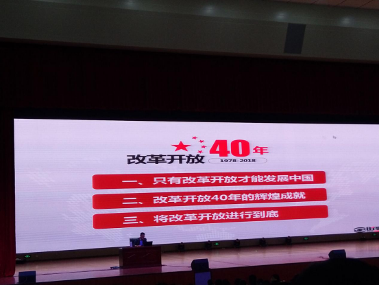 2018年10月10日-11日晚,形势与政策教研室王纪鹏博士在新蒲会堂为同学们做了《改革开放40年:改变了中国影响了世界》的专题报告。